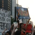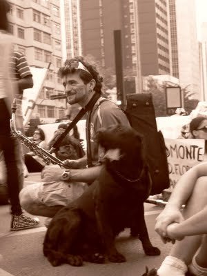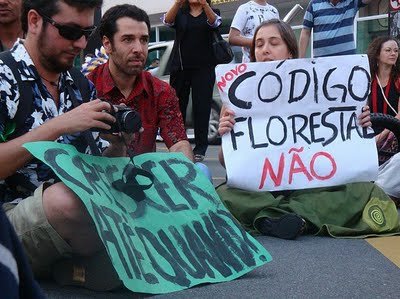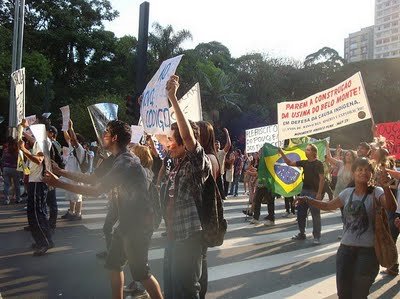 Cerca de 500 pessoas saíram às ruas de São Paulo na tarde de domingo (17/07) para protestar contra a construção da Usina Hidrelétrica de Belo Monte e as alterações no Código Florestal. De cara pintada e empunhando mensagens pedindo proteção às florestas e aos rios da Amazônia, os manifestantes se concentraram no Vão Livre do Masp antes de saírem em marcha pela Avenida Paulista.