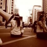 Quando chegaram no cruzamento com a Avenida Brigadeiro Luís Antonio, os manifestantes realizaram um ‘sit-in’ – sentaram-se e ocuparam pacificamente a rua durante mais de 20 minutos, cantando e manifestando seu repúdio à destruição das florestas brasileiras. Também foi feito um minuto de silêncio em memória dos ambientalistas e líderes comunitários mortos recentemente na Amazônia.