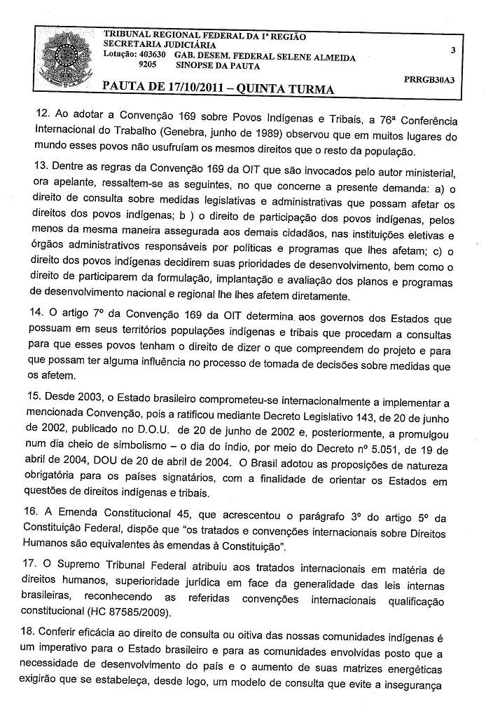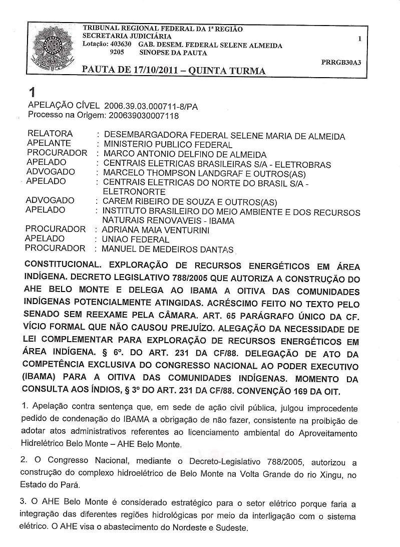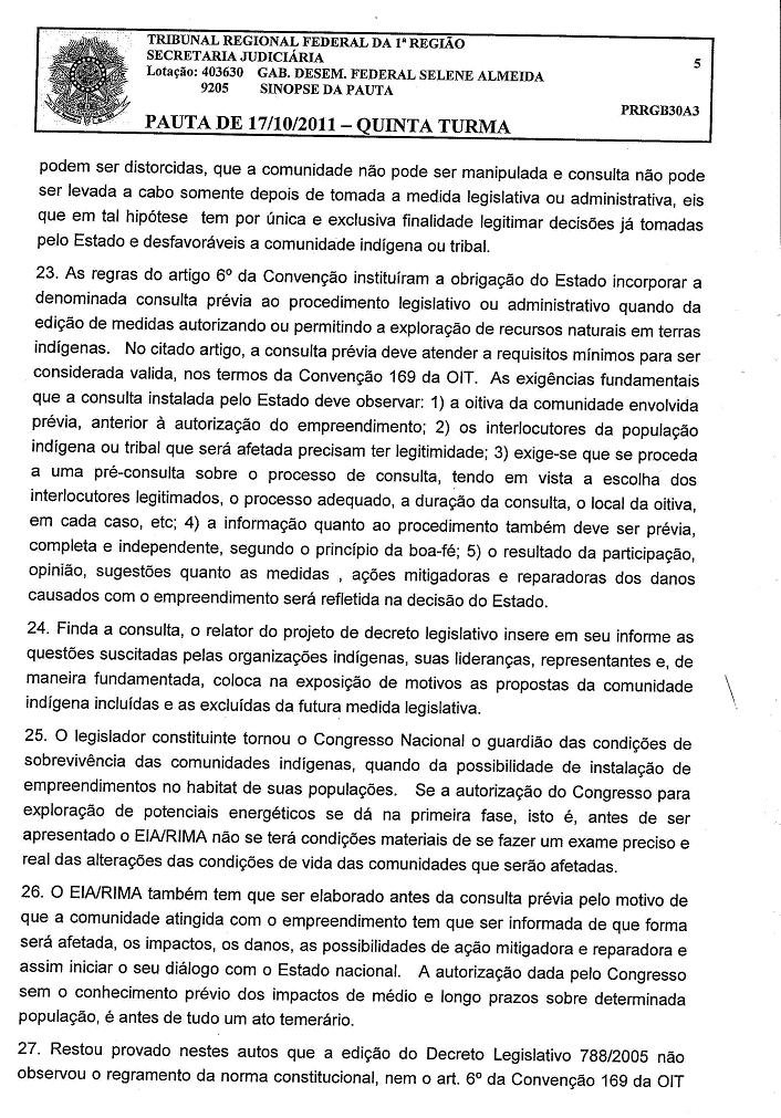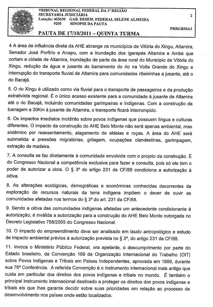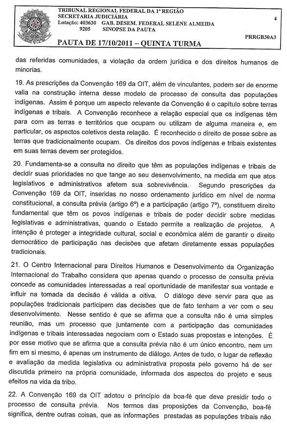 Por campanhaxingu / 18/10/2011 Resumo do voto da desembargadora Selene Almeida no julgamento de 17.10.2011 da apelação da ACP dasoitivas indígenas no TRF1. Para ver os documentos ampliados, clique nas imagens