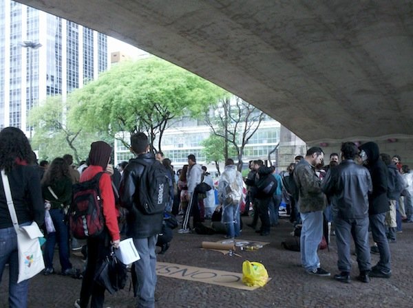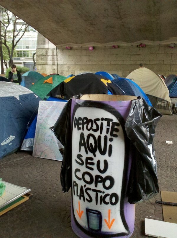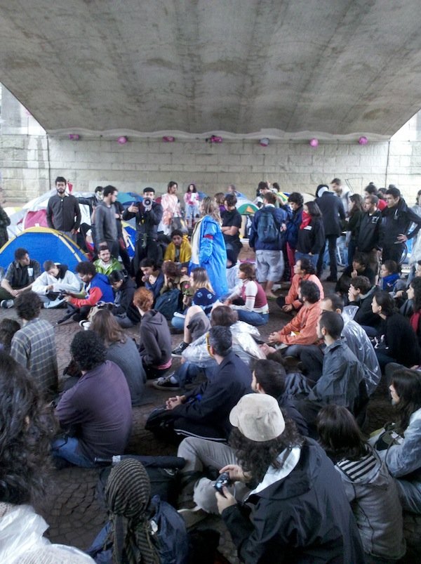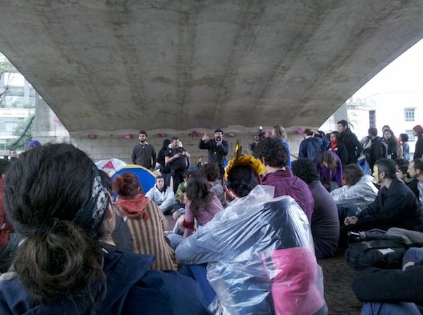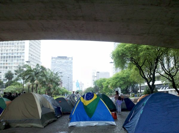 Respondendo ao chamado global para realizar ocupações neste 15 de outubro em locais públicos, manifestantes contra a usina hidrelétrica de Belo Monte acamparam no Vale do Anhangabaú, região central de São Paulo, em vigília.