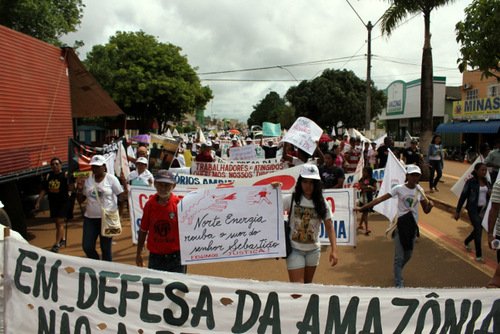 Cerca de 400 pessoas protestaram contra a construção da Usina Hidrelétrica Belo Monte, em Altamira, no Pará, no dia internacional de luta contra barragens. A marcha, inserida no calendário nacional do Movimento dos Atingidos por Barragens (MAB) e construída localmente com o Movimento Xingu Vivo Para Sempre, contou com a participação de atingidos de toda a região, além de militantes de Tucuruí e Itaituba.