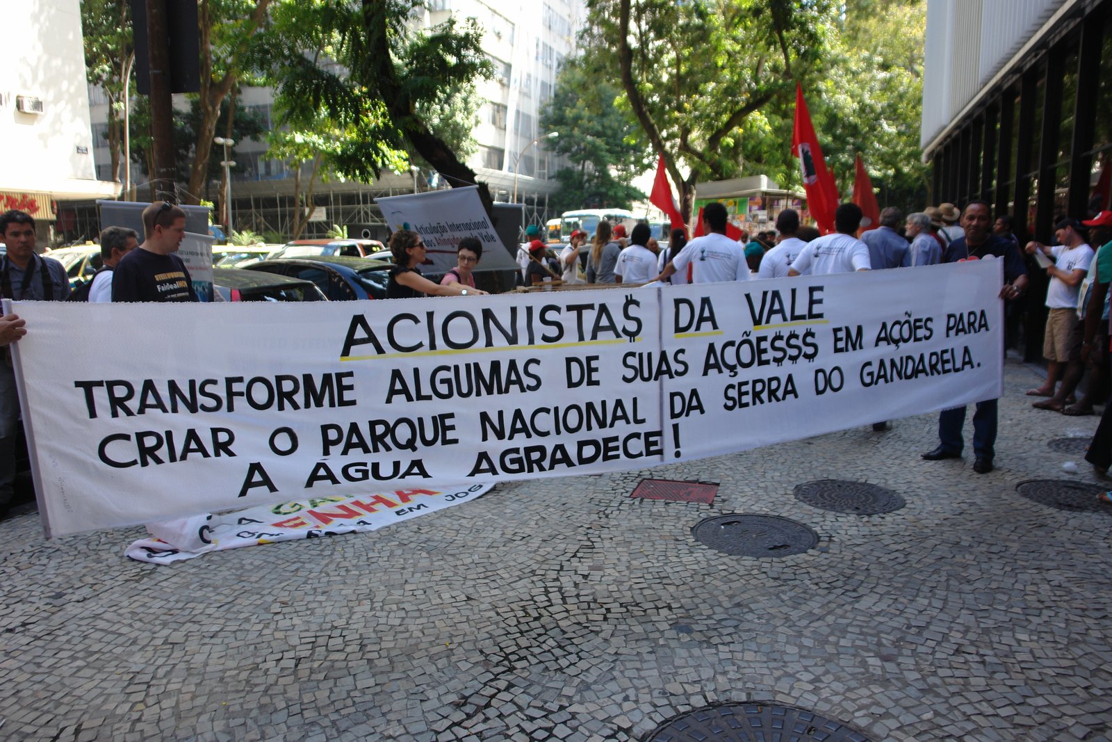 Nesta quarta, 18, dia em que aconteceu no Rio a assembleia de acionistas da mineradora Vale SA, cerca de 150 manifestantes, representantes de comunidades e de trabalhadores afetados pela Vale, promoveram uma manifestação em frente à sede da empresa para protestar contra violações de direitos trabalhistas e sociais e graves impactos ambientais dos projetos da mineradora no Brasil e em outros países onde atua.