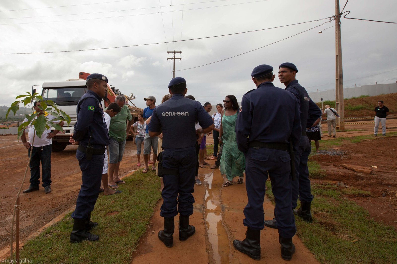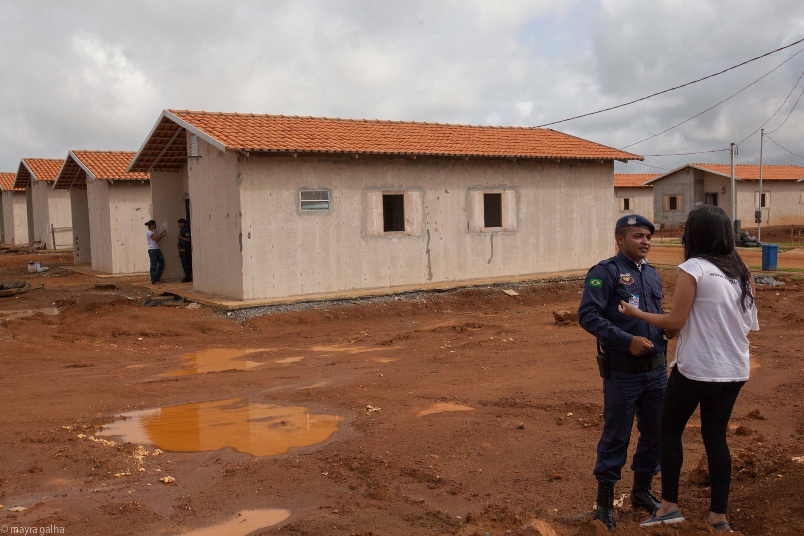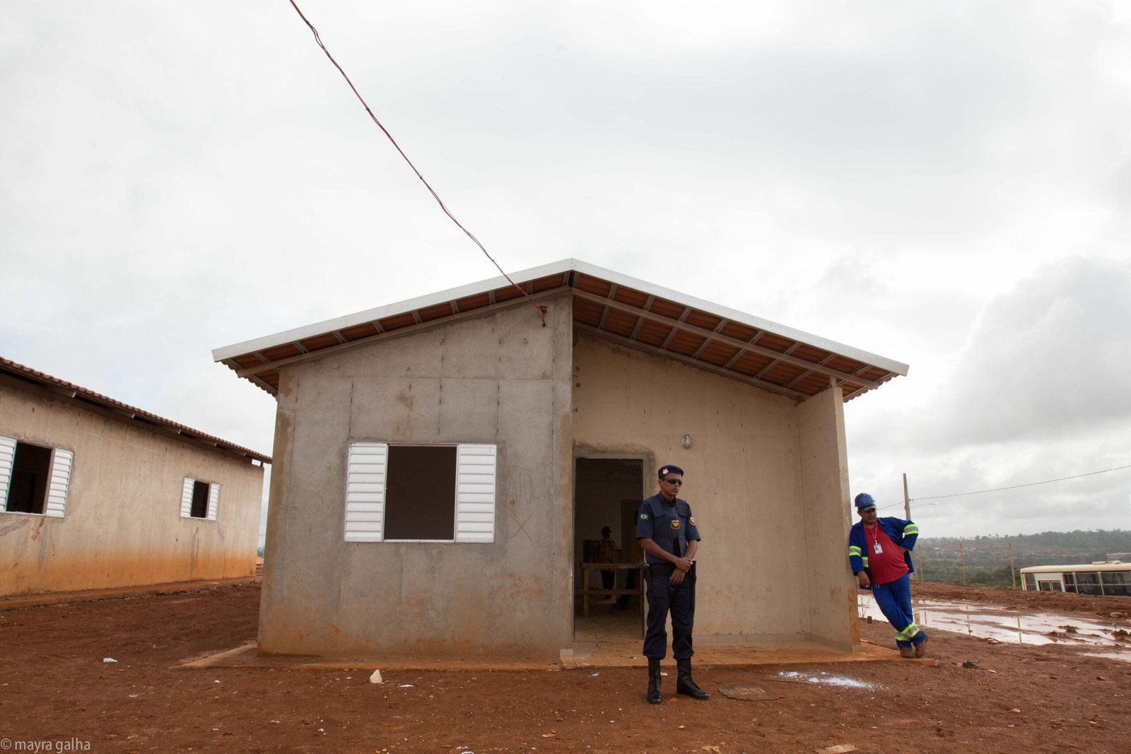 Album de fotos: casas em construção, casas demolidas e seguranças no reassentamento. Clique duas vezes para ampliar