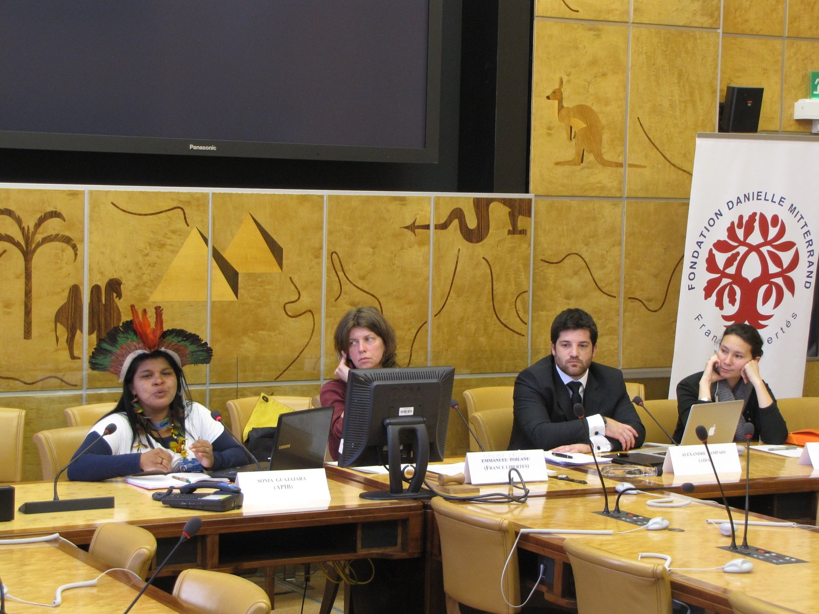 Antes da realização do evento sobre direitos indígenas no Brasil, vários defensores dos direitos humanos se reuniram com a embaixadora da Missão Permanente do Brasil na ONU, Regina Dunlop. Diante da afirmação da embaixadora de que seria mais eficaz se as denúncias apresentadas fossem discutidas com o governo brasileiro em Brasília, Sonia Guajajara e Alexandre Sampaio afirmaram que as críticas aos grandes projetos são sistematicamente ignoradas internamente até que sejam expostas em fóruns internacionais, como os das Nações Unidas. “A reputação do Brasil está em jogo. Estamos aqui para dar visibilidade ao preconceito e à discriminação inaceitáveis sofridos pelos povos indígenas, e para por um fim a isso”, afirmou a coordenadora da APIB.