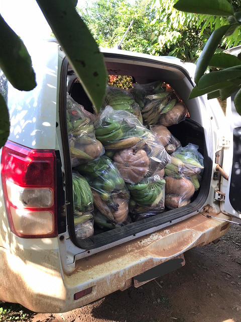 No último domingo, 4, seis famílias de Yawá abraçaram a ideia a partiram para a colheita. Milho, abobora, macaxeira, pimenta, banana, limão. Juntaram a isso um pouco de coisa comprada, feijão, arroz, biscoito, embalaram tudo e ajeitaram no carro da amiga Julianna Costa – a comunidade não tem veículo, conta Lorena, e o rio, que era sua estrada, hoje não presta para navegar.